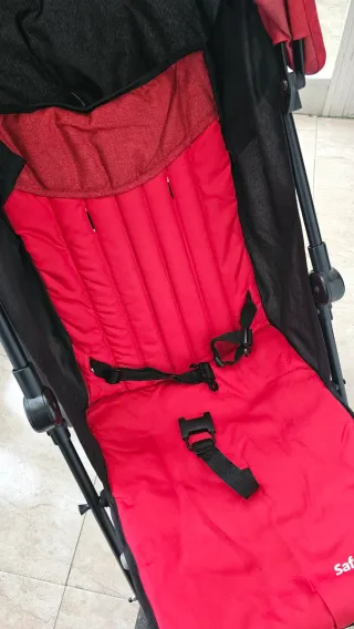 Silla de paseo Safety 1st en color rojo, ideal para transportar a los más pequeños con comodidad. - Diseño ligero y plegable. - Arnés de seguridad de 5 puntos. - Capota para proteger del sol. - Ruedas delanteras giratorias. Se REGALA protector de asiento.