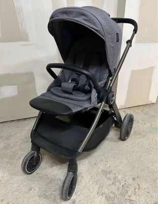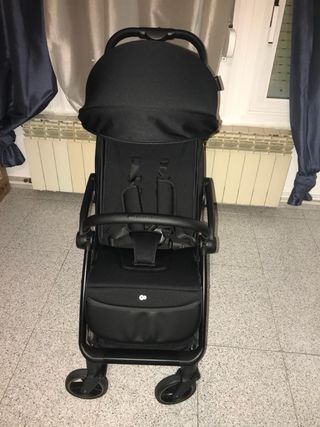 Carro de paseo de la marca Maxi-Cosi. - Color gris oscuro. - Diseño moderno y funcional. - Incluye arnés de seguridad. - Puede ponerse la silla encarada hacia delante o al revés. - Perfecto para viajes o para un coche pequeño por el tamaño plegado del carro (tan grande como una maleta de mano como se observa en una de las fotos) y el poco peso. - Está prácticamente nuevo porque no era el carro principal.