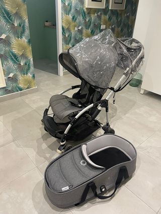 Se vende conjunto Bugaboo Bee 5, incluye silla de paseo y capazo. - Color gris. - Capazo con asas de transporte. - Silla con capota y burbuja de lluvia. - con la bolsa