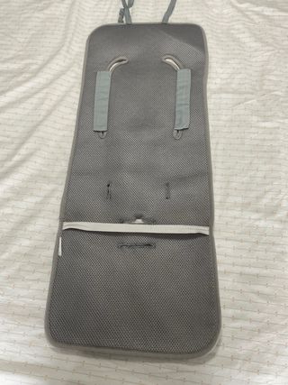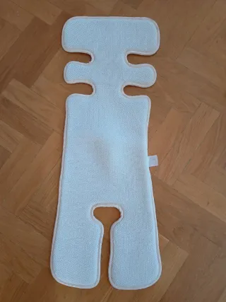 Colchoneta o cojín universal con diseño transpirable. - Material de malla. - Ribete en color marfil. - Abertura para las piernas y cintas del arnés.