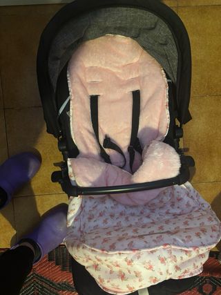 Preciosa funda para silla de paseo, apenas usada. Ideal para proteger y decorar la silla de tu bebé. - Diseño floral en tonos rosas y blancos. - Incluye funda para el asiento y capota. - Material suave y agradable al tacto. - Perfecto estado.
