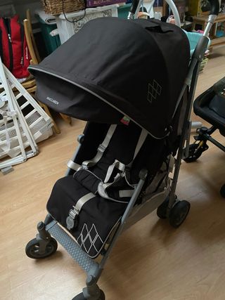 Silla de paseo de la marca Maclaren, ideal para transportar a los más pequeños con comodidad. - Diseño plegable para facilitar su almacenamiento y transporte. - Capota para proteger del sol es ventilada y extensible. - Le desmonté los arneses y el cierre de sujeción del niño para mayor comodidad, pero los puedo volver a montar. - Totalmente desenfundable para mejor lavado.