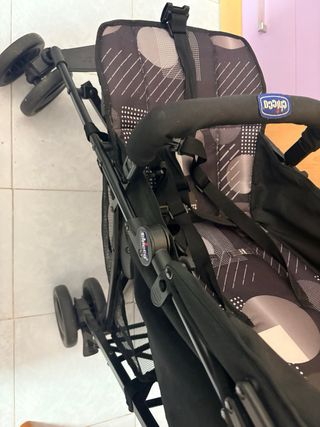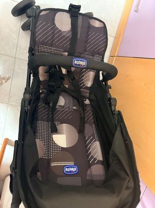 Silla de paseo ligera de la marca Chicco, ideal para desplazamientos cómodos. - Diseño compacto y fácil de manejar. - Capota para proteger del sol. - Arnés de seguridad. - Ruedas para facilitar el movimiento. - 1 año de uso. - Hasta los 22 kg. - Plegado con una mano.