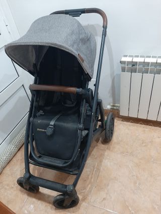 Sillita de paseo UppaBaby en muy buen estado. Incluye protector de lluvia. - Capota gris de tela. - Manillar y barra frontal con acabado en símil piel marrón. - Cesta de almacenamiento inferior negra. Para recoger en Manresa.