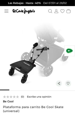 Accesorio para carrito de bebé que permite que un niño mayor viaje de pie o sentado. - Marca: Be Cool - Modelo: Skate - Incluye asiento y manillar. - Ruedas giratorias para facilitar el movimiento.