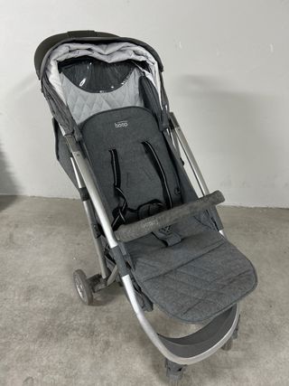 Silla de paseo ligera y fácil de plegar, ideal para el día a día. - Capota acolchada de color gris. - Asiento con arnés de seguridad. - Ruedas delanteras giratorias.
