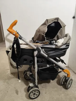 Silla de paseo Peg-Perego completa con cuco, capazo y silla. No me deja agregar más fotos también agrego al lote sombrilla(la compré aparte) plástico para la lluvia para las tres cosas(alguna la compré), funda para la silla(compré), bolso. Trae su cubre capazo y silla. El capazo se pliega para su transporte y la silla de paseo se pliega para meter en el maletero o en casa. Tiene un rasguño en el manillar. Precio negociable.
