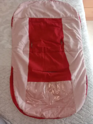 Funda para silleta o silla de paseo, con un diseño reversible en color rosa pálido y rojo. - Parte frontal con detalles en rojo. - Zona inferior con plástico transparente. - Acolchada para mayor comodidad.