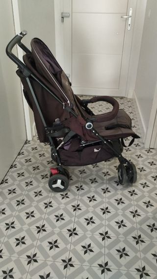 Silla de paseo Silver Cross en color marrón oscuro. - Capota amplia. - Asiento acolchado. - Arnés de seguridad. - Ruedas delanteras giratorias.