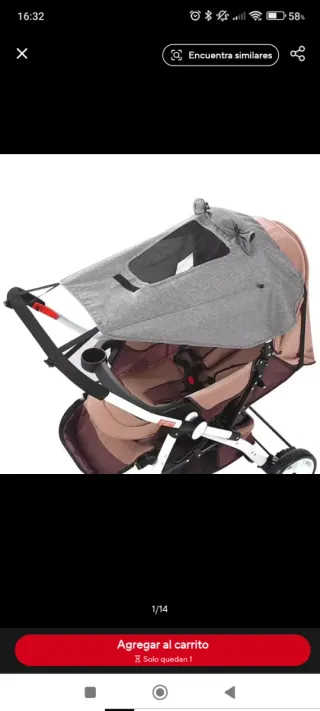 Parasol para cochecito, ideal para proteger del sol. - Color gris - Diseño con ventana de ventilación. Adaptable a todo tipo de carritos o sillas de paseo. Bolsa para transportar y guardar. Ocupa muy poco espacio