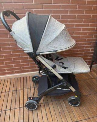 Silla de paseo ligera, ideal para desplazamientos cómodos. - Diseño moderno en tonos grises. - Capota extensible. - Arnés de seguridad de 5 puntos. - Reposabrazos. - Cesta de almacenamiento inferior. - Portavasos.