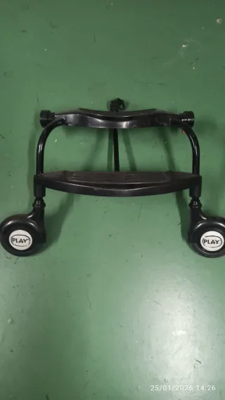 Accesorio para silla de paseo de bebé. - Plataforma con ruedas, puede ir sentado, de pie y penden ir dos niños - Diseño en color negro. - Se puede adaptar a cualquier tipo de silla