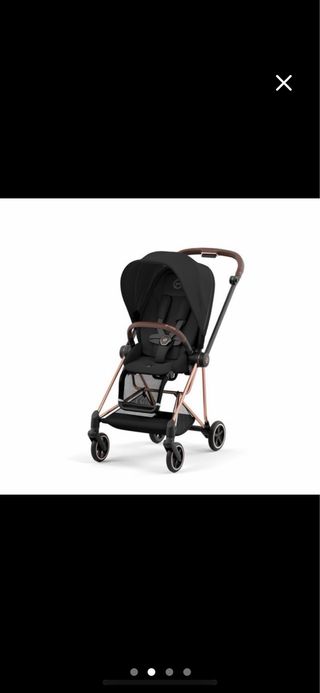 Silla de paseo Cybex Mios en color negro con detalles en oro rosa. Es compacta y ligera, ideal para la ciudad. - Chasis en oro rosa. - Asiento reversible. - Capota extensible. Nueva la silla solo utilice el chasis con el capazo 3 meses