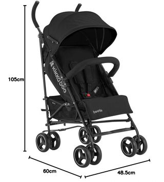 Silla de paseo KikkaBoo modelo BEETLE en color negro. Ligera y fácil de plegar. - Capota. - Barra delantera. - Arnés de seguridad. - Cesta de almacenamiento. - Ruedas delanteras giratorias.