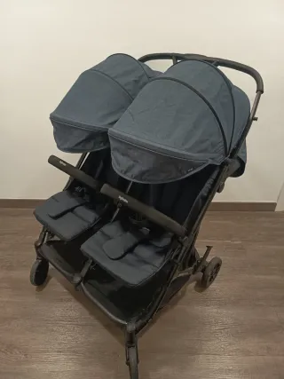 Carro gemelar de la marca Inglesina, ideal para dos bebés. - Diseño en color gris oscuro. - Capotas independientes. - Asientos acolchados.