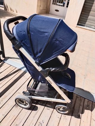 Silla de paseo marca Musty Nexo. Color azul vaquero. La capota tiene dos medidas para abrirse. Se cierra en forma de libro. Las ruedas se sacan las 4. También se vende con el saco de invierno a juego con el carro. Y colchoneta de la misma marca que sirve para invierno y verano (reversible) Y colchoneta de verano.