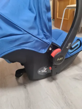 Silleta de viaje en color azul. - Asa de transporte. - Capota. - Sistema de anclaje.