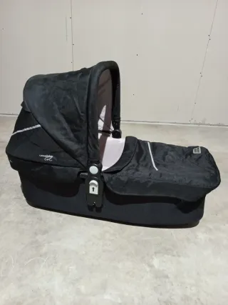 Carro de bebé Casualplay de tres piezas. Ideal para paseos cómodos. - Capazo. - Silla de paseo. - Bolso - Chasis negro. - Ruedas todoterreno.