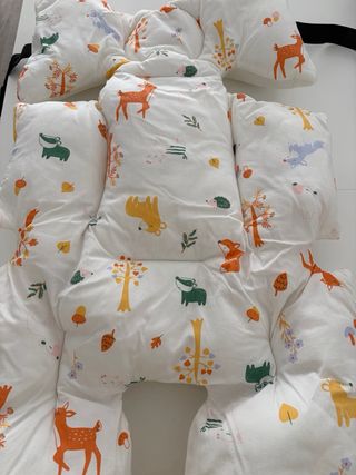 Reductor acolchado para silla de paseo con un bonito estampado de bosque y animales. - Tejido suave y transpirable. - Acolchado extra para mayor comodidad.