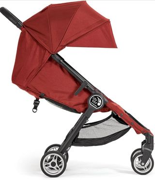 Silla de paseo Baby Jogger City Tour en color rojo. Es compacta y ligera, ideal para viajar. - Capota extensible. - Arnés de seguridad de 5 puntos. - Ruedas delanteras giratorias. - Cesta de almacenamiento inferior.