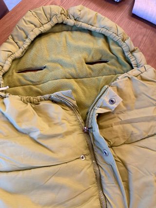 Saco universal de color verde claro, ideal para sillas de paseo. Cuenta con un forro interior suave y cálido. - Cierre con cremallera. - Aberturas para el arnés de seguridad. en buen estado