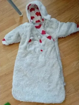 Saquito invierno para sillita paseo o carro de bebe marca Sakkitos. Forro polar interior de tacto suave para estar calentito. Adaptable a cualquier carrito. En buen estado. Longitud 90. Anchura 54(zona más ancha). También sirve para el cuco o capazo.