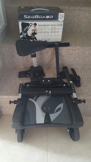 Se vende patín SegBoard para silla de paseo, ideal para niños de 24 meses en adelante. Está en buen estado y listo para usar. - Asiento extraíble. - Fácil de instalar. - Incluye todos los componentes que se ven en las fotos.