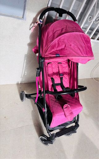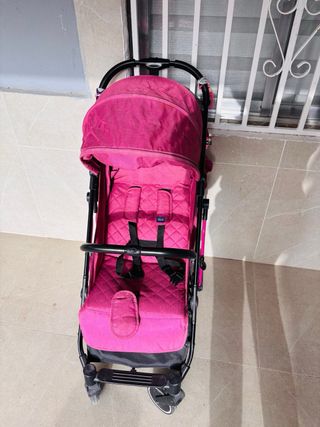 Silla de paseo Chicco en color rosa, ideal para transportar a los más pequeños con comodidad. - Diseño moderno y funcional. - Capota para proteger del sol. - Arnés de seguridad. - Reposapiés. - Ruedas para facilitar el movimiento. -doy bolso de tuc tuc y la funda