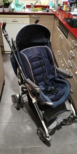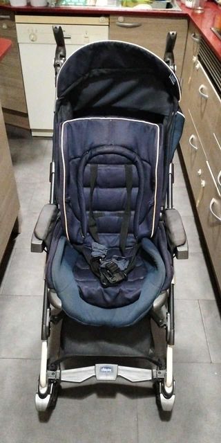Cochecito de paseo Chicco de tres ruedas, en buen estado solo hay que ver qué le pasa a la rueda delantera que se plega la rueda está perfecta no conocía el mecanismo - Ligero y fácil de manejar. - Plegado compacto. - Asa regulable en altura. - Capota extensible.