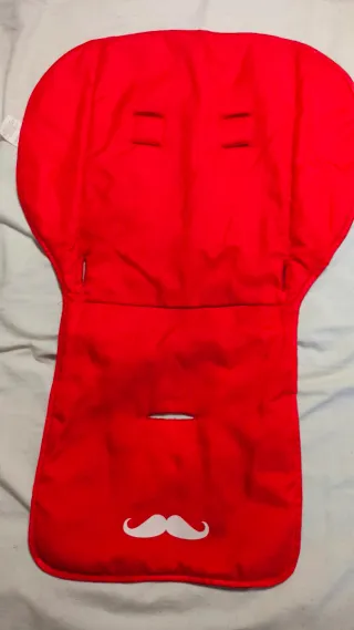 Colchoneta para silla de paseo de la marca Asalvo. Diseño en color rojo con un divertido estampado de bigote blanco en la parte inferior. - Color: Rojo - Estampado: Bigote blanco - Marca: Asalvo