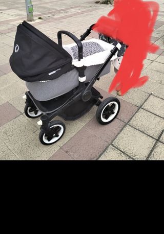 Buffalo incluido cuco para recién nacido y capota de verano la cual está a estrenar. Regalo una capota más negras y otras dos más usadas, también saco beige y sombrilla negra. Todo marca Bugaboo. El cochecito tiene algún rasguño però el funcionament és como el primer dia