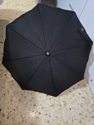 Sombrilla negra para cochecito o silla de paseo de bebé. Se encuentra en perfecto estado, como nueva. Tiene FPS de 50. Comprada en tienda exclusiva de bebés. Adaptable el agarre para cualquier tipo de carro. - Diseño universal. - Mecanismo de ajuste flexible.