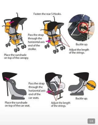 Tela quitasol con enganches para atar a la capota del cochecito de bebé.