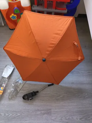 Sombrilla de color naranja para cochecito marca jane - Tejido resistente. - Incluye soporte para cochecito. Se regala funda carro mismo color y marca