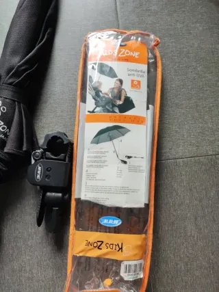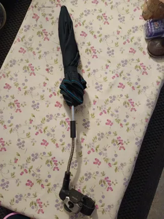 Sombrilla para carrito de bebe de la marca Jane. -Buena calidad, nada de Aliexpress. Original de Jane. -Con filtro Anti-UV -En buen estado -Soporte universal. Válido para multiples carritos. -Regulable en tres vértices -Color azul marino