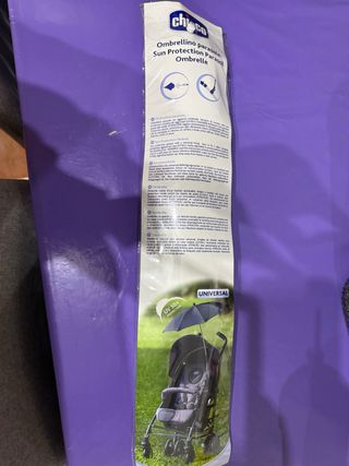 Sombrilla universal para cochecito Chicco, ideal para proteger del sol. - Protección UV 50+. - Universal, se adapta a la mayoría de cochecitos. - Fácil de instalar y ajustar.