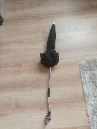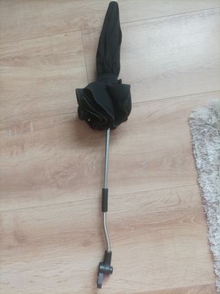 Sombrilla gris para silla de paseo, en buen estado. - Ideal para proteger del sol. - Fácil de colocar y ajustar. - Incluye pinza para sujetar a la silla.