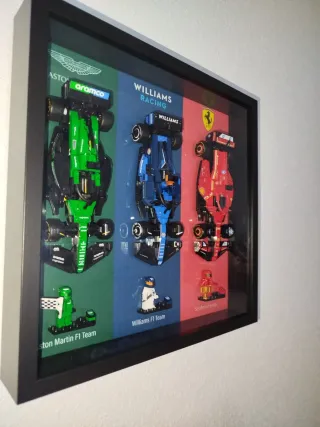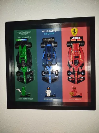 Expositor personalizado para modelos Lego Speed Champions de Fórmula 1. - no incluye vehículos y figuras. - Cada sección tiene el logo y nombre del equipo. - se incluye anclajes de vehículos y cuadro (tipo vitrina) que cubre la colección para no coger polvo. -se realizan todo tipos de diseños, equipos, etc... El diseño se adapta a tu colección.