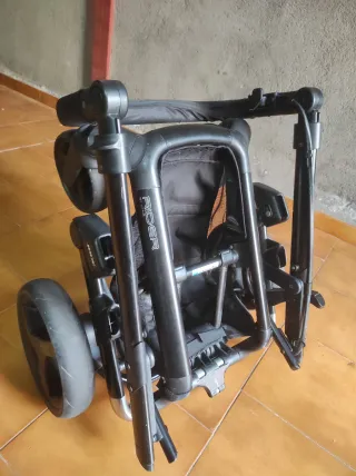 Carrito de bebé en color negro, diseñado para ser práctico y fácil de transportar. - Estructura metálica resistente. - Ruedas grandes para mayor maniobrabilidad. - Asiento acolchado.