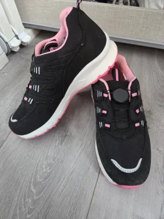 Zapatillas deportivas para niña con un diseño moderno y cómodo. - Cierre de cordones con sistema de giro. - Detalle de tiras y costuras en contraste. - Suela blanca y rosa. - Talla 34