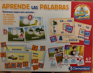 Estado impecable. Todo completo. Juego didáctico Clementoni para aprender palabras. Incluye tarjetas y letras para formar vocabulario. - Diseñado para niños de 4 a 7 años. - Fomenta el aprendizaje del alfabeto, iniciales, sílabas y frases. - Incluye personajes como Teddy el Genio.