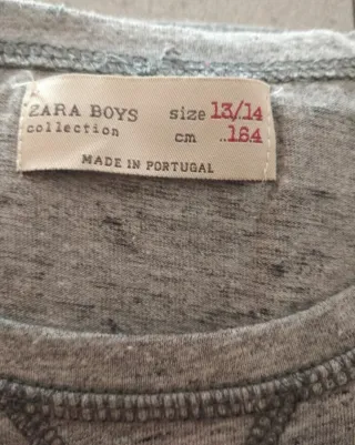 Camiseta de manga larga para niño de la marca Zara. - Color gris. - Estampado frontal de un oso con gafas de sol y gorra. - Cuello redondo.