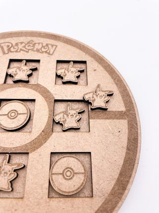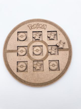 ¡Hazte con todos…los turnos! ⚡️ Original Tres en Raya de Pokémon en madera y grabado láser. Es perfecto para regalar o coleccionar. Tablero circular en forma de Poké Balls y 10 fichas ( 5 Pikachu + 5 Poké Balls) Medidas: 15 cm Material: MDF de alta calidad. Se puede grabar el nombre del niños sin coste adicional tanto por la parte de delante como por detrás. Si estás pensando en un regalo original para la comunión de tu hijo, tengo otros tableros minis de 3 en raya de Pokémon donde puedo hacerte precio por lotes 😊 Se pueden hacer de otras sagas sin problema. Más información por mensaje privado.