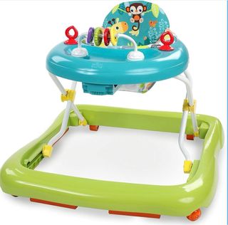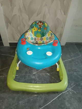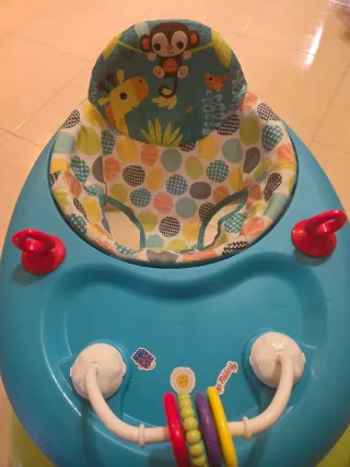 Andador para bebés de la marca Bright Starts, con un diseño colorido y divertido. - Asiento acolchado. - Bandeja de juegos con juguetes. - Plegable para facilitar su almacenamiento y transporte. Usado por 1 mes
