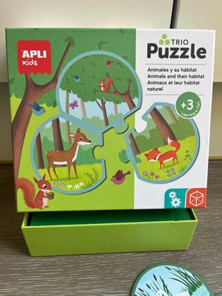 Puzzle de tres piezas de APLI Kids con temática de animales y su hábitat. - Ilustraciones de animales en su entorno natural. - Fomenta el aprendizaje y la diversión para los más pequeños.