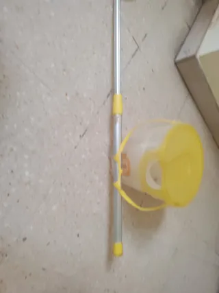 Kit de pesca para niños. - Caña de pescar plateada con detalles amarillos. - Cubo amarillo con asa.