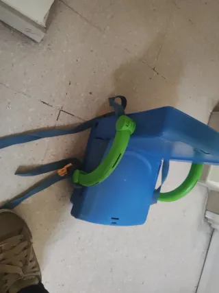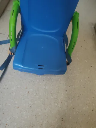 Asiento para bebé, ideal para llevar a cualquier lugar. Su diseño plegable lo hace muy práctico. - Color azul y verde. - Correas de sujeción incluidas.