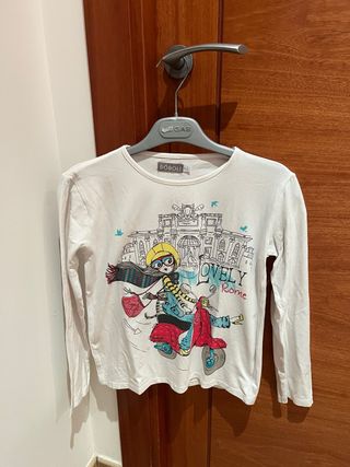 Camiseta de manga larga blanca con un divertido estampado inspirado en Roma. - Diseño frontal con una chica en scooter y monumentos. - Detalle de texto Lovely Rome. - Marca: Boboli.