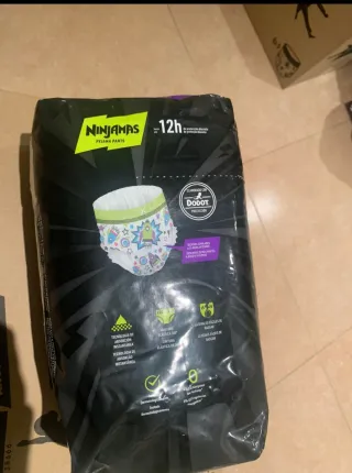 2 cajas de pañales Ninjamas para niños. - Talla: 8-12 años. - Peso: 27-43 kg. - Diseño: Pyjama Pants dodot - Cada caja contiene 6 paquetes de 9 unidades cada uno. *** Si quieren solo una caja el precio es 20€****