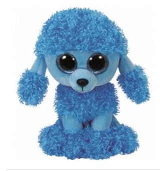Adorable peluche de caniche de color azul brillante. Sus grandes ojos le dan un aspecto tierno y juguetón. - Material suave y esponjoso. - Diseño de caniche con pelo rizado.